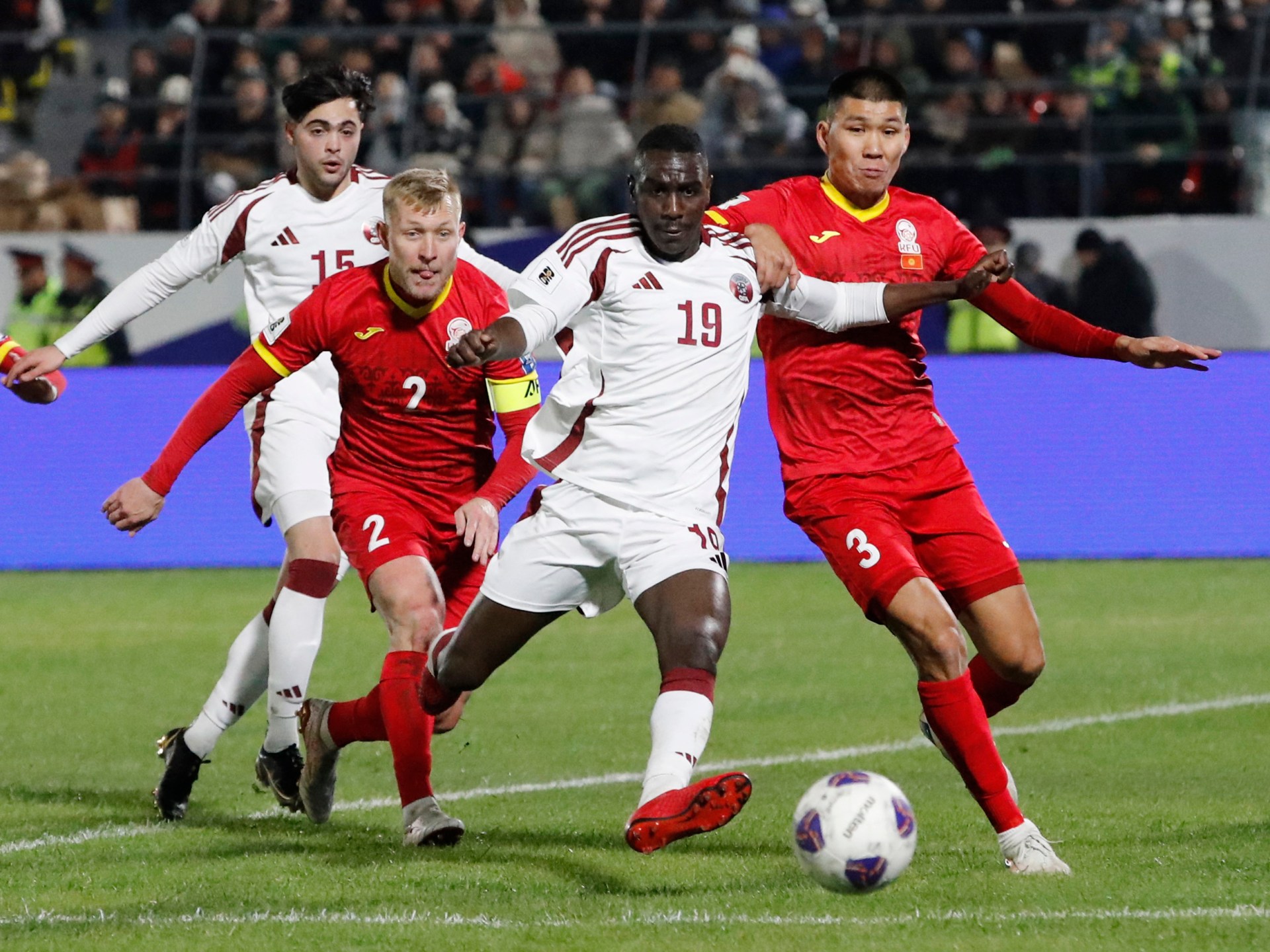 تقلصت آمال قطر في التأهل المباشر لكأس العالم لكرة القدم 2026 بخسارتها 3-1 خارج أرضها أمام قرغيزستان في الجولة الثامنة للمجموعة الأولى بالتصفيات الآسيوية الثلاثاء.