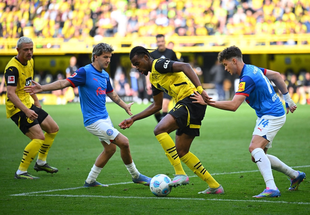 انتزع بوروسيا دورتموند بطاقة التأهل إلى دوري أبطال أوروبا بفوزه على ضيفه هولشتاين كيل 3-0 مستغلاً في الوقت ذاته خسارة منافسه فرايبورج على أرضه أمام أينتراخت فرانكفورت 1-3، ليضمن الأخير بطاقته أيضاً إلى المسابقة القارية الأهم، في المرحلة الرابعة والثلاثين الأخيرة من بطولة ألمانيا لكرة القدم.ودخل دورتموند المباراة في المركز الخامس، وهو يحتاج إلى الفوز بفارق ثلاثة أهداف، لضمان مكانه بصرف النظر عن نتيجة فرايبورج الرابع وضيفه أينتراخت فرانكفورت الثالث علماً بأنه كان يملك 54 نقطة متخلفاً بفارق نقطة واحدة عن فرايبورج و3 عن فرانكفورت.وعاد دورتموند إلى السباق للتأهل إلى دوري الأبطال من بعيد، فقبل نحو شهر، وجد نفسه في المركز الحادي عشر إثر خسارته أمام مضيفه لايبزج بهدفين نظيفين. حينذاك، بدا أن وصيف دوري أبطال أوروبا في الموسم الماضي غير قادر على إنهاء الموسم في أحد المراكز المؤهلة إلى المسابقات الأوروبية.لكن منذ تلك الخسارة، فاز دورتموند بسبع مباريات وتعادل في واحدة في الدوري لينتزع البطاقة القارية التي ستدر على خزائن النادي إيرادات كبيرة.ويدين دورتموند بالتأهل إلى مدربه الكرواتي نيك كوفاتش الذي استلم منصبه منتصف الموسم خلفاً لنوري شاهين ونجح في إعادة التوازن إليه.وكان دورتموند بلغ نهائي دوري الأبطال في الموسم الماضي وخسر بصعوبة أمام ريال مدريد الإسباني 0-2، كما بلغ ربع النهائي هذا الموسم وخرج على يد برشلونة.واستهل دورتموند المباراة بقوة إذ احتسب له الحكم ركلة جزاء انبرى لها هدافه الغيني سيرهي جيراسي، بعد مرور 3 دقائق.وزدات الأمور سوءاً لكيل، إثر طرد لاعبه كارل يوهانسون في الدقيقة التاسعة ليكمل فريقه المباراة بعشرة لاعبين.وأضاف النمساوي مارسيل سابيتسر الهدف الثاني مطلع الشوط الثاني (47) قبل أن يختتم فيليكس نميتشا الثلاثية في الدقيقة 73.وفي مباراة فرايبورج وفرانكفورت، افتتح الأول التسجيل بواسطة الياباني ريتسو روان (27)، قبل أن يدرك فرانكفورت التعادل عن طريق أنسجار كناوف (45+4).وفي الشوط الثاني، أضاف فرانكفورت هدفين سريعين حملا توقيعي الدنماركي راسموس كريستنسن (61) والتونسي إلياس سخيري (63)، واكتفى فرايبورج بالتالي بالمشاركة في الدوري الأوروبي.وأنهى بايرن ميونيخ البطل الموسم المحلي بفوز ساحق على ضيفه هوفنهايم برباعية نظيفة، وارتأى مدرب البايرن البلجيكي فنسان كومباني إراحة هدافه الإنجليزي هاري كين وزج بسيرج جنابري في مركز قلب الهجوم، كما اشرك الجناح الفرنسي كينجسلي كومان بدلاً من لوروا ساني.وسدد جنابري كرة لولبية من مشارف المنطقة مرت فوق العارضة بقليل قبل أن يفتتح الجناح الفرنسي ميكايل أوليسيه التسجيل من ركلة حرة مباشرة بيسراه لتستقر في الشباك (33).وكاد المهاجم الكرواتي أندريه كراماريتش يدرك التعادل لهوفهايم في مطلع الشوط الثاني عندما وصلته كرة أمامية فانفرد بالحارس مانويل نوير وسدد كرة جانبية (50).ودفع هوفنهايم ثمن إضاعة هذه الفرصة لأن يوزوا كيميتش ضاعف تقدم فريقه، مستغلاً كرة عرضية من أوليسيه، وسدد كرة قوية ارتطمت بقدم أحد مدافعي أصحاب الأرض وخدعت حارسه (53).وشارك كين وسانيه بعد مرور ساعة على انطلاق المباراة بدلاً من كومان وتوماس مولر الذي خاض في صفوف البافاري مباراته الأخيرة في الدوري الألماني بعد مسيرة مظفرة في صفوفه.وأضاف جنابري الهدف الثالث عندما تلقى كرة من كين فراوغ مدافعاً وسددها بيسراه داخل الشباك (80) قبل أن يختتم كين مهرجان الأهداف بتسديدة في سقف الشباك (86) رافعاً رصيده إلى 26 هدفاً، ليتوج أفضل هداف للموسم الثاني توالياً.وودع باير ليفركوزن مدربه الإسباني شابي الونسو المرشح انتقاله إلى ريال مدريد الأسباني بالتعادل خارج ملعبه مع ماينز 2-2، افتتح ماينز التسجيل عبر بول نيبيل (35)، لكن مهاجم ليفركوزن التشيكي باتريك شيك سجل هدفين خلال 5 دقائق في مطلع الشوط الثاني أحدهما من ركلة جزاء ليمنح التقدم لفريقه رافعاً رصيده إلى 21 هدفاً هذا الموسم، وأدرك ماينز التعا
