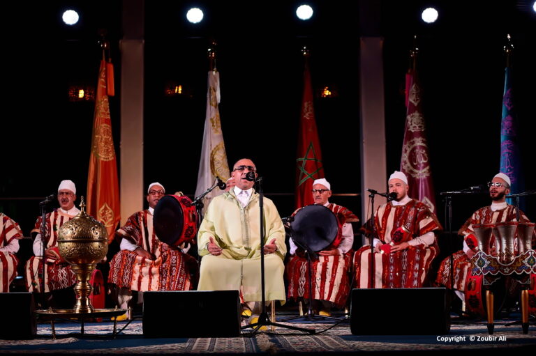 بدأت الأمسية مع فرقة “سبيروا” الغانية، التي أذهلت الجمهور بعزف آلتها التقليدية “السبيريوة” وحكايات من نوع خاص، تعبر عن الأمل والإرث الأصيل. تبعها عرض مالي مميز لفرقة “أوركيسترا” بقيادة الكبير بالاكي سيسوكو، حيث تناغمت الأنغام الملهمة مع كلمات عميقة، تبرز مكانة الموسيقى كذاكرة وحكمة تجمع بين الماضي والمستقبل. تلت ذلك، مشاركة فرقة “عيساوة” من مكناس، التي حولت “باب المكينة” إلى ساحة رقص وتعبد، بموسيقى صوفية وتواشيح تلاحم بين الأجيال، مع تداخل ممتع بين الطبول الغانية والموسيقى المغربية التقليدية، في صورة تناغم أذهل الحضور.