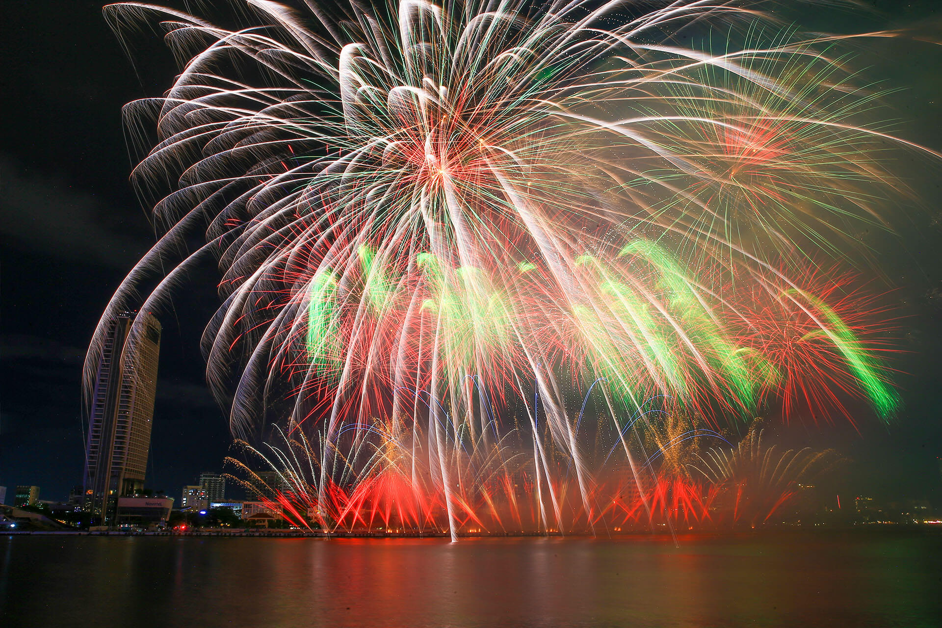 تجسدت روح مدينة دا نانغ العصرية والحيوية في ألعاب نارية بلغة ضوئية دقيقة وفنية. واختتم العرض بأغنية “Undefeated” الرائعة، معلنةً بذلك تطلع دا نانغ الدائم نحو الصعود في العصر الجديد. ورسمت الألعاب النارية الكثيفة والمتفجرة في السماء صورة تنينٍ مُحلق، مُعانقةً الجمهور في نهاية مثالية.