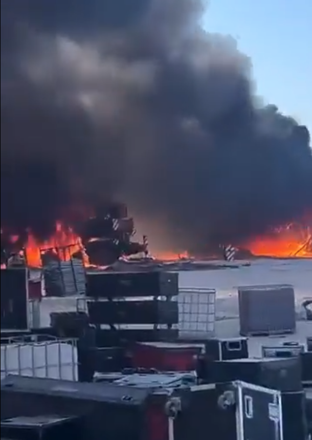 ووفقاً للمعلومات المتاحة، نشب الحريق في مقر الحفل على أحد شواطئ الساحل الشمالي يوم السبت 12 يوليو، والتهمت ألسنة اللهب السماعات والمسرح بالكامل. ظهر في مقاطع الفيديو المتداولة عدد من العاملين بمحيط الحفل يحاولون إطفاء الحريق بالوسائل المتاحة لديهم.
