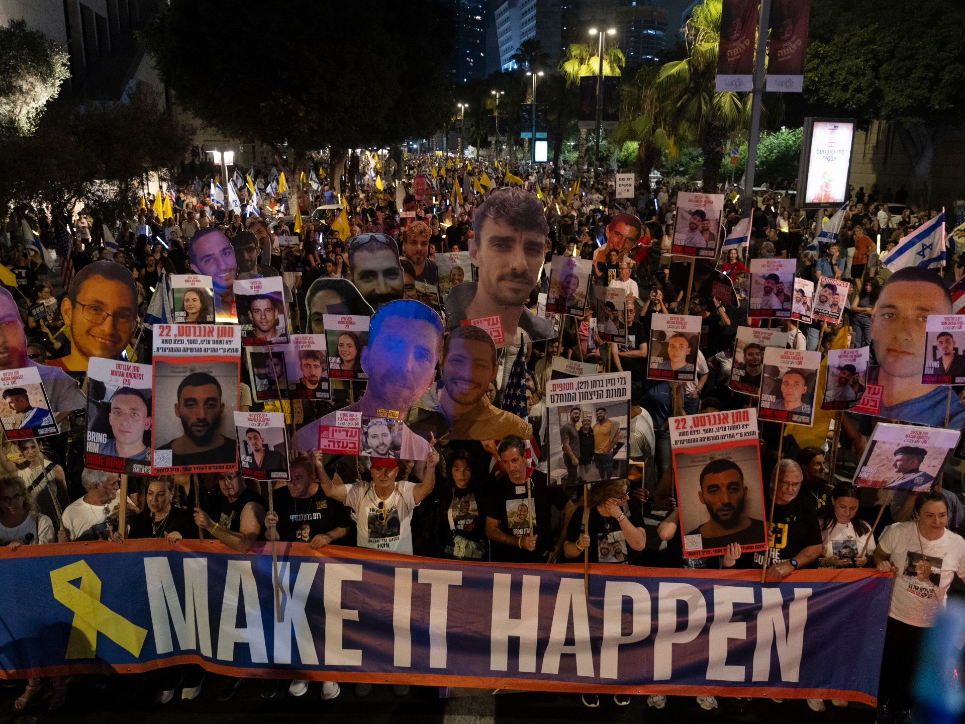 تظاهر آلاف الإسرائيليين، ليل السبت/الأحد فيما تسمى “ساحة المختطفين” وسط تل أبيب، للمطالبة بإعادة الأسرى الإسرائيليين من قطاع غزة ، حتى لو كان ذلك على حساب وقف حرب الإبادة.