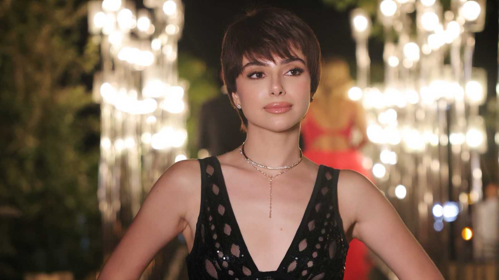 أما في سهرة Joy Awards، فقد ظهرت بإطلالة لافتة حملت توقيع المصمم رامي قاضي، ارتدت خلالها فستانًا طويلًا بلا أكمام، تميز بأقمشته اللامعة التي عكست طابعًا عصريًا وأنيقًا.