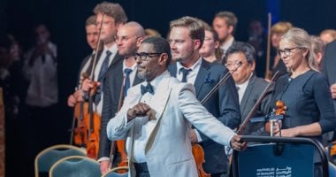 قدّم الأوركسترا السعودي مقطوعات موسيقية استثنائية برزت للعالم جمال التراث الثقافي والتنوع في تاريخ الموسيقى السعودية، كما تألقت خلال تقديم أغنية “أغفر لعبد مذنب”وغيرها من الروائع الغنائية، نال الأوركسترا المشترك إشادات الحضور من الشخصيات المهمة الذين وقفوا أكثر من مرة لتحية المايسترو هاني فرحات والأوركسترا بالتصفيق.
