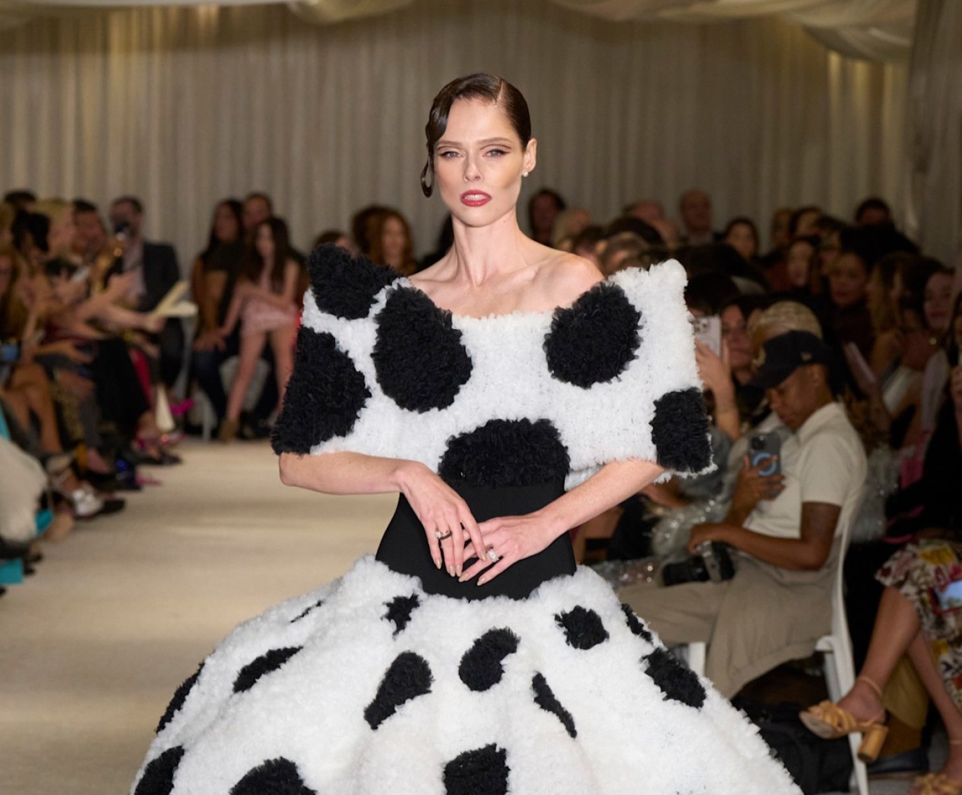 افتتحت مجموعة كريستيان سيريانو Christian Siriano اليوم الثالث من أسبوع نيويورك للموضة، باحتفال مرح وأنيق رسمته نقاط البولكا دوت والخطوط. تألّقت العارضات على منصة العرض بأقمشة شفافة وواسعة، تراوحت بين الأناقة المونوكرومية ونفحات من الألوان النابضة بالحياة. وقد ارتقت نقاط البولكا إلى مستوى الأزياء الراقية، بفضل الخياطة الذكية والأقمشة غير المتوقَّعة كالحرير والميكادو. واختُتم العرض بمجموعة من الفساتين الجريئة، أبرزها للسوبر موديل كوكو روشا، منسَّقة بعناية مع قبعات ونظارات وأكسسوارات متناغمة؛ مما يثبت براعة سيريانو في مزج الفخامة مع الطابع العملي.