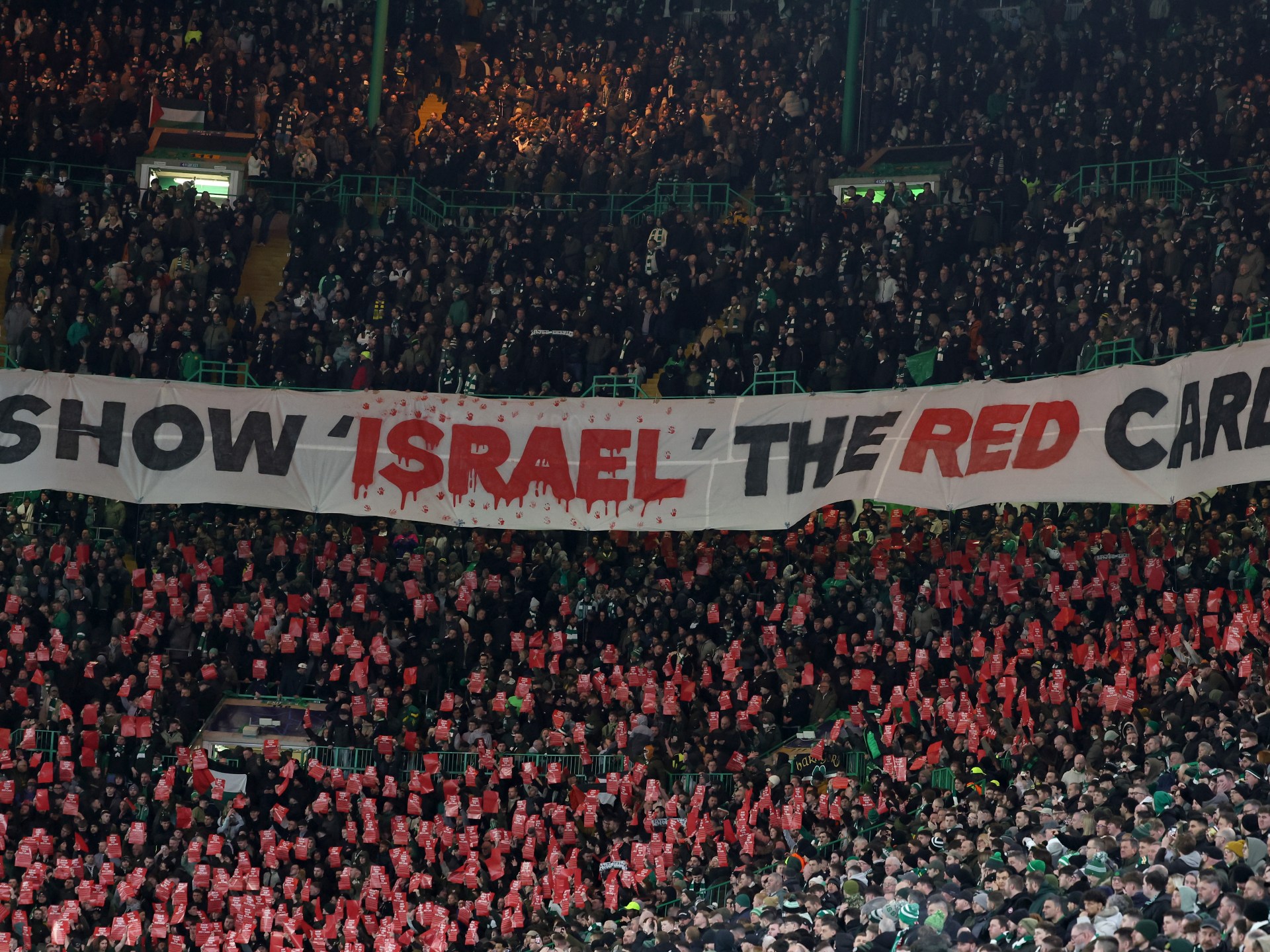 وأعرب يويفا ورئيسه السلوفيني ألكسندر شيفرين عن موقف أكثر تشددا تجاه إسرائيل الشهر الماضي عندما وضعت لافتات كُتب عليها “أوقفوا قتل الأطفال. أوقفوا قتل المدنيين” على أرض الملعب خلال مباراة باريس سان جيرمان الفرنسي وتوتنهام هوتسبير الإنجليزي ببطولة كأس السوبر الأوروبي بمدينة أوديني الإيطالية.