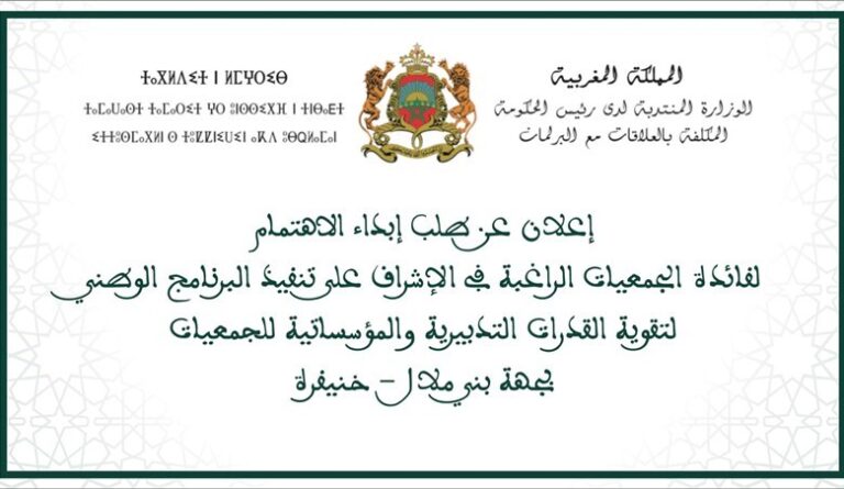 إعلان عن طلب إبداء الاهتمام للجمعيات الراغبة في الاشراف جهة بني ملال – خنيفرة