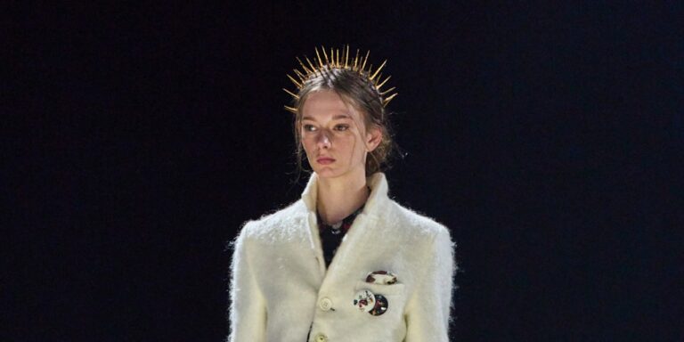 البحث عن إطلالة يومية وعملية في خريف 2025 لم يعد أمراً صعباً مع وجود تصاميم الطقم الصوف والموديلات المميزة التي تعكس ذوق السيدة العملي والأنيق. فمن Max Mara احصلي على تنسيق مميز للطقم الصوف وهو عبارة عن فستان طويل تم تنسيقه مع الكاب الطويل باللون الأسود. هذه الإطلالة تختصر أناقة الخريف ويمكن ارتداؤها في المناسبات الرسمية، والملفت أن الصوف دخل في تصميم الجوارب ومن لون الطقم لتكون الإطلالة متناسقة بالشكل المطلوب.