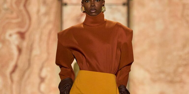 يميل المصممون إلى البرتقالي كـ “حالة مزاجية” للخريف 2025 – نارية، حنينية، وفخمة بلا جدال. جلبت ألوان البرتقالي المحروق الدفء والعمق إلى منصات خريف 2025، من البدلات المهيكلة لدى “سان لوران” وصولاً إلى الملابس ذات اللمسات الريترو لدى “غوتشي”. هذا اللون الغني الترابي والفخم في الوقت ذاته، يمنح شعوراً بالثبات والتألق، وقد ظهر في الجلد اللامع أو الأقمشة المحبوكة الفخمة.