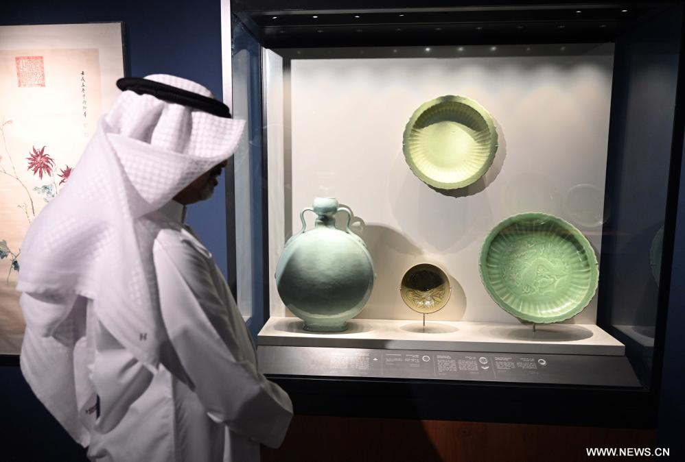 ويضم المعرض 128 قطعة أثرية متنوعة من مجموعة الصباح الأثرية توثق رحلة التبادل الفني والثقافي بين الحضارتين الصينية والإسلامية عبر آلاف السنين.
