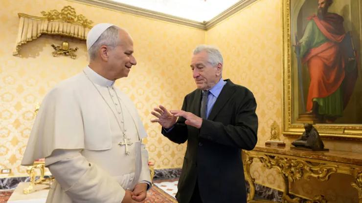 ذكرت وكالة Vatican News، وهي إحدى المنصات الرسمية للفاتيكان، أن البابا ليو الرابع عشر استقبل دي نيرو في لقاء خاص صباح الجمعة، حيث تبادل الطرفان الحديث بروح من الدعابة والود.