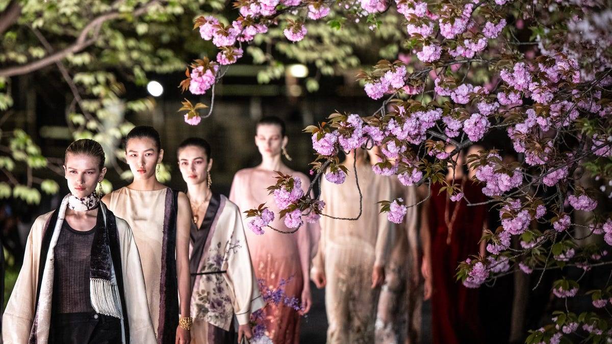 في Dior قدّمت الدار مجموعة مستوحاة من أرشيفها الكلاسيكي، حيث ظهرت الورود بأسلوب مطبّع على التول والحرير مع قصّات أنثوية راقية تعبّر عن الأناقة الباريسية الخالدة.