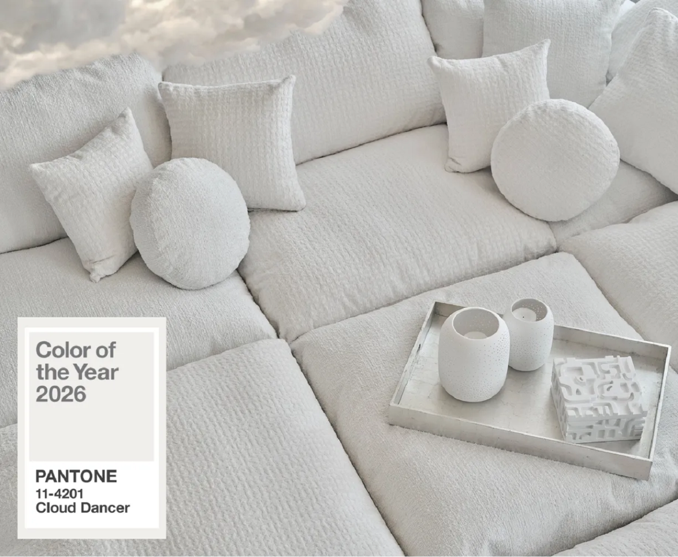 سَمّى معهد بانتون، الذي يعتبر المرجع العالمي في مجال الألوان، “راقصة السحاب” (Cloud Dancer) ورمزه PANTONE 11-4201، لوناً لعام 2026، ووصفه في إعلان بأنه “لون أبيض متموج ومتوازن، مفعم بالسكينة، وراقٍ يرمز إلى تأثير مهدئ في مجتمع يعيد اكتشاف قيمة التأمل الهادئ”. لا يشذ لون بانتون 2026 عن اتجاه الألوان المحايدة السائدة أخيراً وهو يفتح آفاقاً للإبداع، ويطلق العنان لخيالنا، مما يتيح لنا المجال لبدايات ورؤى جديدة وأفكار جريئة تتبلور. في حين أن درجات الأبيض المختلفة كانت شائعة في عالم الموضة منذ فترة طويلة، إلا أن “كلاود دانسر” في مجال التصميم الداخلي ينسجم بشكلٍ رائع مع المواد الطبيعية كالخشب والحجر.