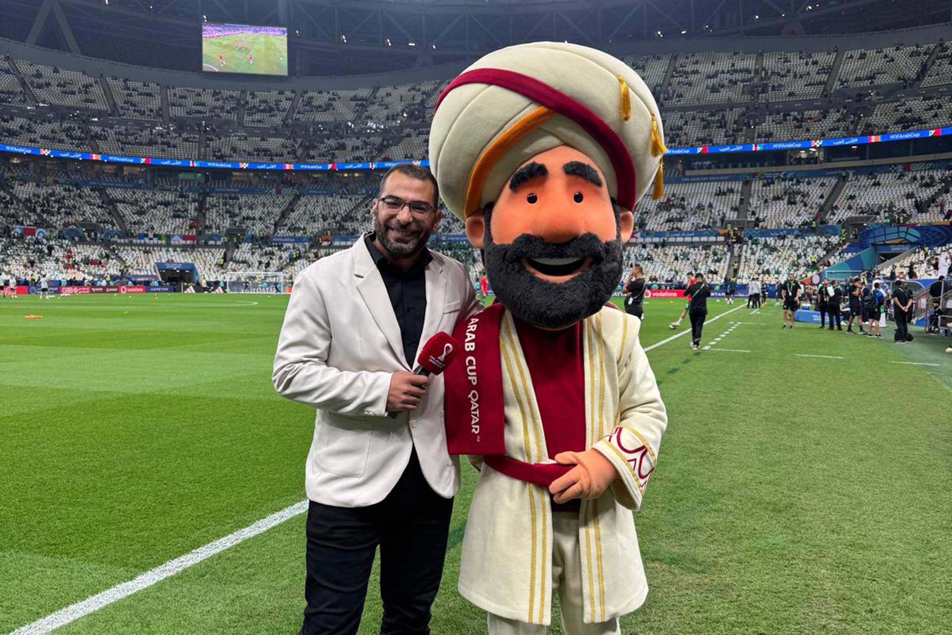 وقبيل الساعة السابعة والنصف مساء (19:30) بتوقيت مكة المكرمة، ظهر “جُحا” برفقة مرافقه وهما يدخلان ممر أرضية ملعب لوسيل. حاولت الجزيرة نت الاقتراب لمحاورتهما، غير أن تعليمات المنظمين وممثلي الاتحاد الدولي لكرة القدم (فيفا) حالت دون ذلك، إذ يُمنع التميمة من الإدلاء بأي تصريحات أو التفاعل الإعلامي.