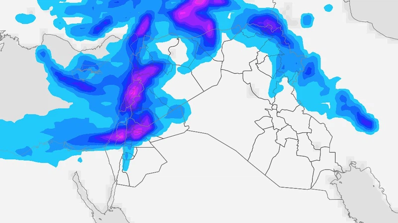 الثلاثاء 13 كانون الثاني: ذروة المنخفض الجوي (أمطار غزيرة ورياح عاصفة)