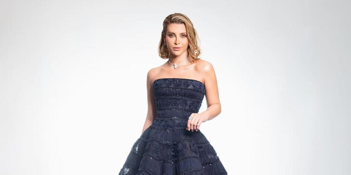 ماغي بوغصن تألقت هي الأخرى بإطلالة مستوحاة من أناقة الأميرات، حيث ظهرت بفستان مرصع حمل توقيع جورج حبيقة، اختارته بلون نيود فاتح، مزدان بتطريزات كريستالية فاخرة، باللونين الفضي والذهبي، وجاء الفستان بأكمام قصيرة مع فتحة ياقة مربعة وعريضة، كما جاء الخصر محددا، وقد انتفخت الأطراف مع لمسة الذيل الخلفي المنسدل، واكتملت أناقة ماغي بأقراط مرصعة وخواتم، وأسدلت ماغي شعرها الويفي خلف ظهرها مع تلك الإطلالة.