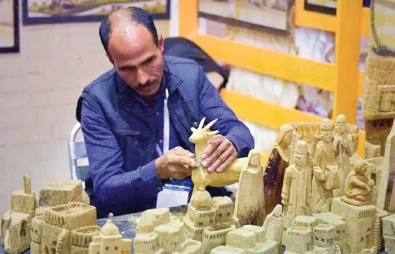 وحين خرج بمنتجه إلى المعارض، كان عليه أن يقدّم نفسه للجمهور من بوابةٍ مفهومة: التراث. يقول «العمدة» إنه بدأ من «أجسام تراثية» فى محافظته، يحولها إلى مجسمات ونماذج تحكى للآخرين عن الوادى الجديد بطريقة غير مباشرة: «بدأت إنى أشتغل على الأجسام التراثية اللى موجودة عندى فى المحافظة، إزاى أصدّرها وأورى للناس، وأعمل جذب للمحافظة بتاعتى بطريقة غير مباشرة بالنماذج اللى أنا بعملها». ثم اتسعت الدائرة إلى مشاهد من مصر عمومًا: «وسعت الموضوع، إنى أعمل مصر بالعموم، بعض المشاهد اللى للمصريين عامة، أعمل نماذج منها».