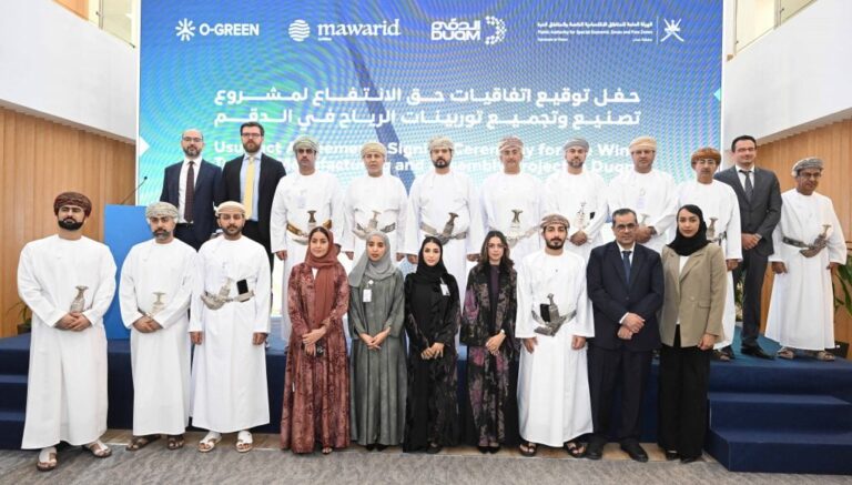 ويشكّل مشروع إنشاء مصنع لتصنيع توربينات الرياح في المنطقة الاقتصادية الخاصة بالدقم خطوة إستراتيجية لدعم تحول الطاقة وتنويع القاعدة الصناعية، ما يدعم مستهدفات رؤية “عُمان 2040”.