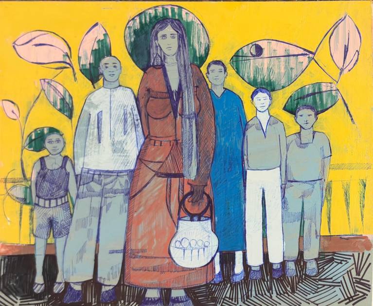 يجيء المعرض الجديد، للفنانة يارا حاتم التي تدرّس في كلية الفنون، ضمن معارض جماعية خلال الأعوام الخمسة الأخيرة كانت مظهرة تأثرها الواضح بدراستها فن التصوير الجداري، وقد انعكس ذلك على تعاملها مع الخطوط وطريقتها في الزخرفة، والعمل على تركيب خامات متنوعة.