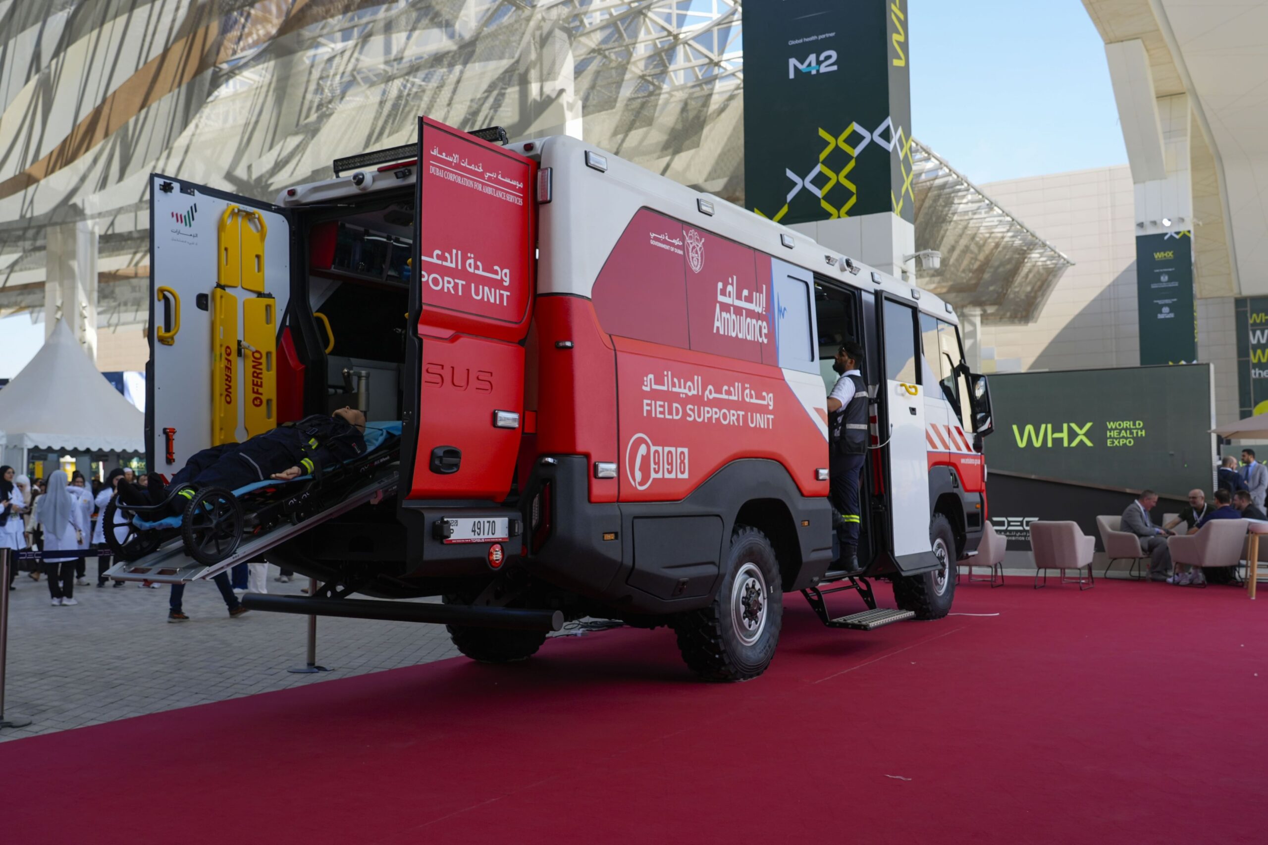 شاركت مؤسسة دبي لخدمات الإسعاف في معرض الصحة العالمي 2026 بدبي، من خلال استعراض أحدث الآليات والحلول التقنية في مجال الخدمات الإسعافية، ضمن جهودها المستمرة لتعزيز جاهزية الاستجابة للحالات الطارئة والارتقاء بجودة الرعاية الطبية ما قبل المستشفى.