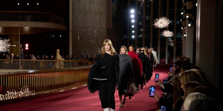 احتفالاً بالذكرى الخامسة والأربعين لتأسيس دار أزياء “مايكل كورس” Michael Kors، أقام المصمم عرضاً يُعدّ من أروع عروضه على الإطلاق: أمسية في دار الأوبرا المتروبوليتان. ووفقاً للمصمم، كانت مجموعة خريف وشتاء 2026 بمثابة احتفاء بنيويورك بكل ما فيها من سحر وتألق. وقد ركّز في هذه المجموعة على تفسيرات مختلفة لأزياء السهرة. وأوضح كورس في مؤتمر صحفي قبل العرض: “لكل شخص في نيويورك طريقته الخاصة في اختيار ملابسه الليلية. فمنهم من يرتدي فستاناً أنيقاً، ومنهم من يرتدي بدلة رسمية، ومنهم من يرتدي قميصاً رجالياً وبنطالاً رمادياً”.