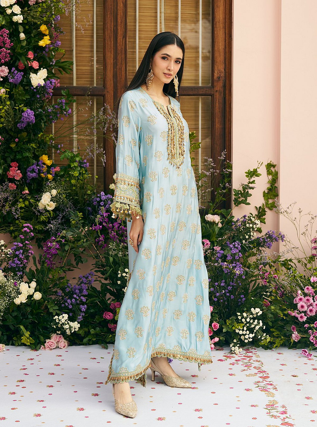 بدلات تشيكانكاري وأطقم كورتا: أطقم كورتا خفيفة الوزن ومصممة بدقة من القطن أو الجورجيت، مقترنة بالبالازو، هي أساسيات للارتداء اليومي وتجمعات الإفطار.