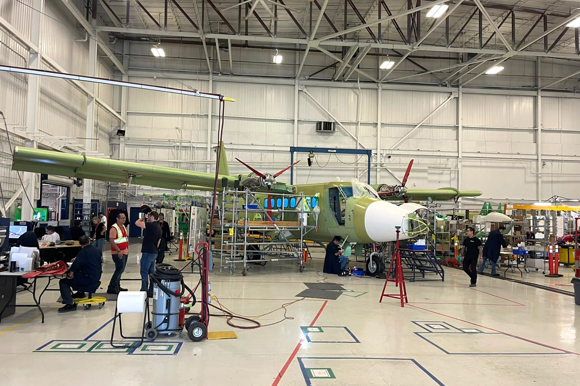 مهندسون وفنيون يعملون داخل شركة “دي هافيلاند كندا” لتصنيع الطائرات (الجزيرة)
